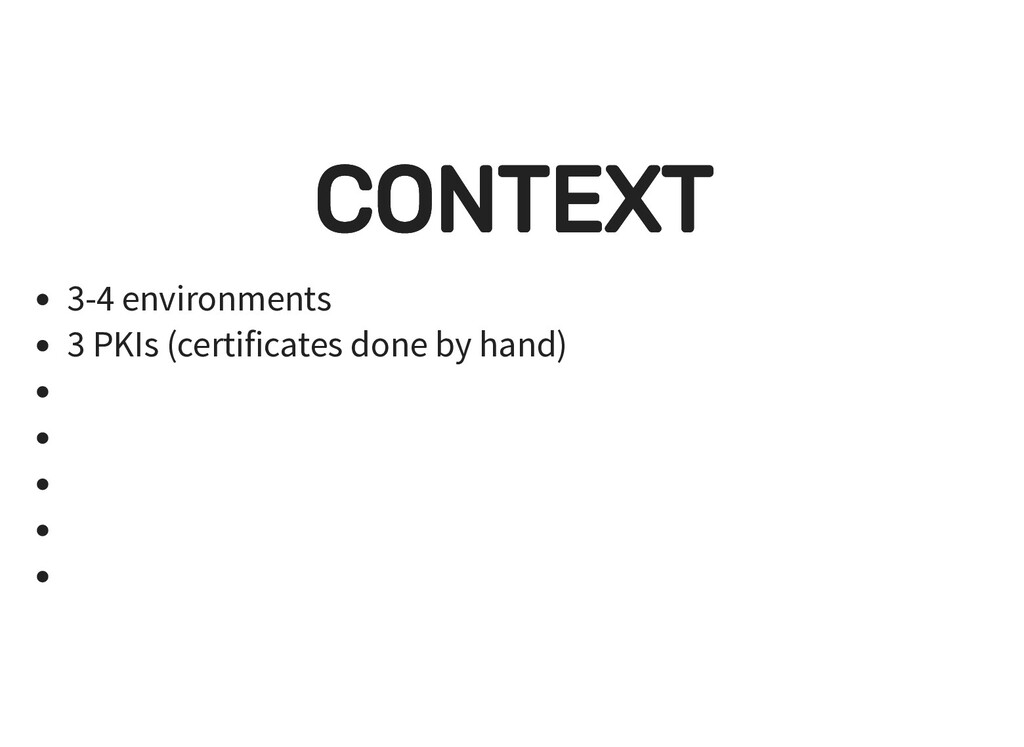 All is automated to deliver TLS certificates to all services and backend during each steps of bootstrapping the service, with ACL, roles and PKIs plus the auto-unseal service of Vault. An new environment can be boostraped from zero with a few human interactions due to the ACL security.