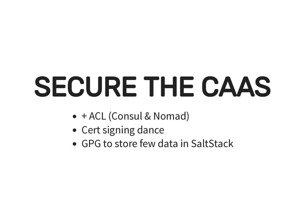 Talk about our experience on the setup of a Container Service with the HashiCorp stack and some grains of Saltstack. We'll show how we secured the systems.