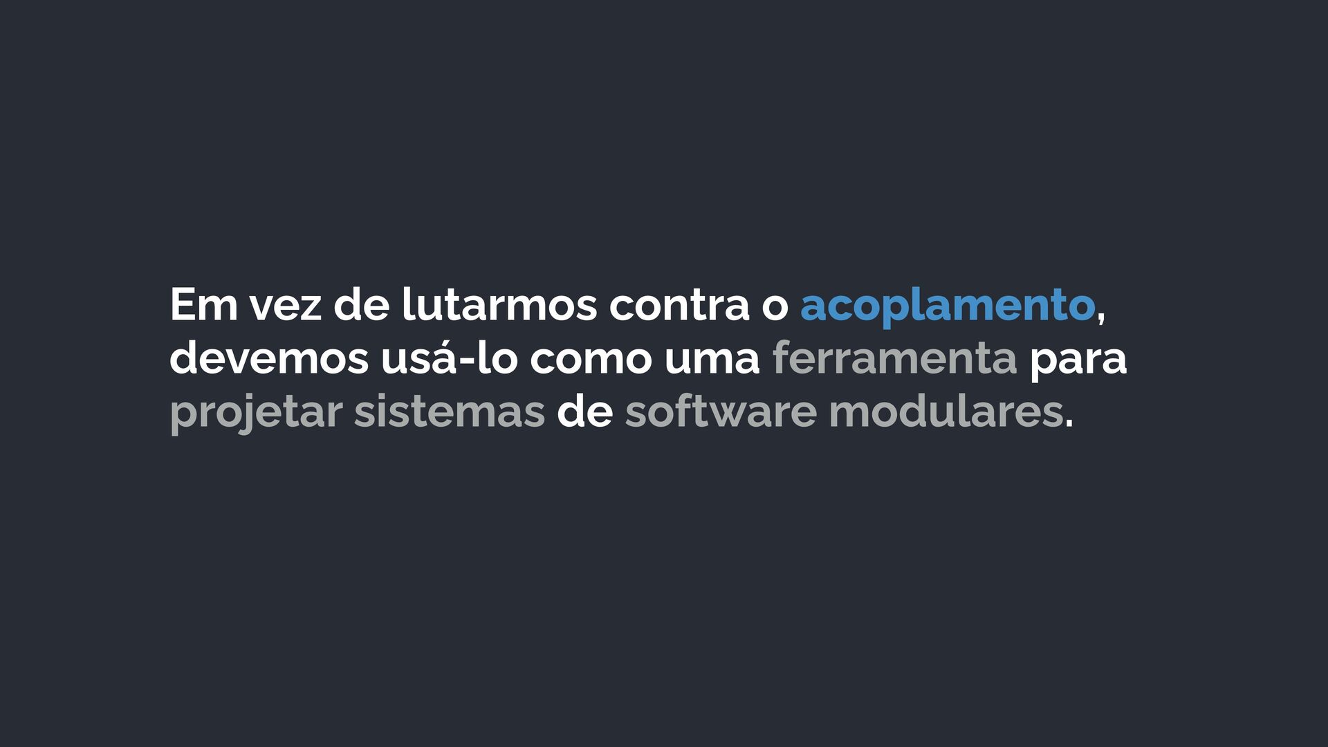 A palestra traz uma reflexão prática e profunda sobre coesão e acoplamento, destacando sua importância na arquitetura de software. Ele também aborda os tipos de coesão (como funcional e acidental) e de acoplamento (implementação, temporal, aferente e eferente), além de boas práticas como injeção de dependência e o princípio da inversão de dependência, essenciais para evitar códigos frágeis e difíceis de evoluir. A palestra também contempla os temas como módulos, microsserviços e monolitos modulares, reforçando a importância desses conceitos tanto no nível de código quanto de arquitetura.