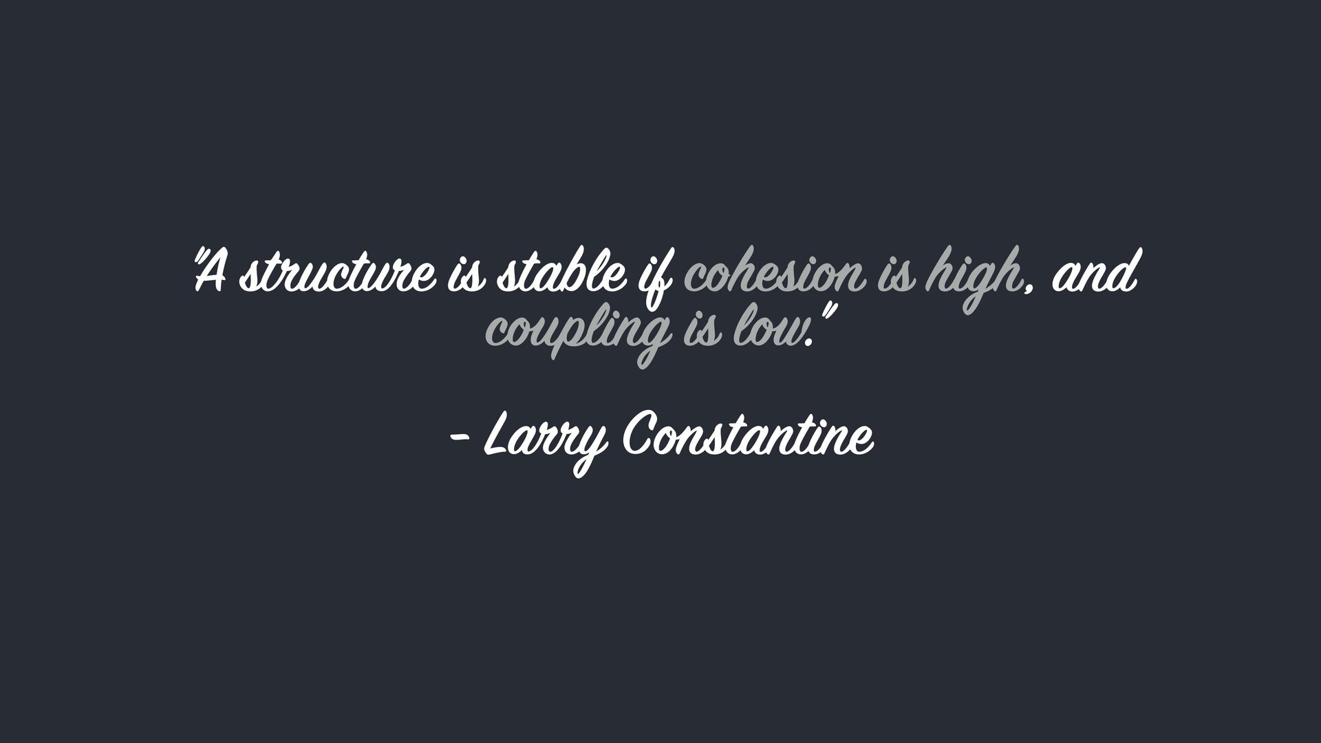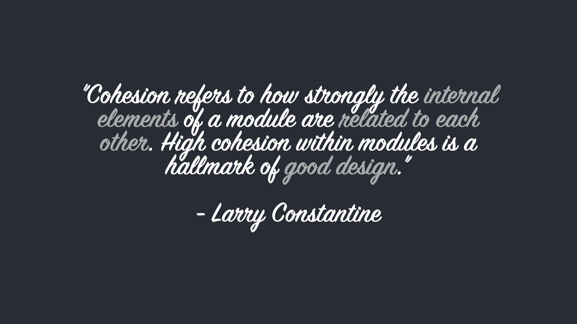 gly the int er nal elements of a module ar e related to each oth e . High cohesi on within modules is a hallm ar k of g oo d design." - L arr y C on stantine