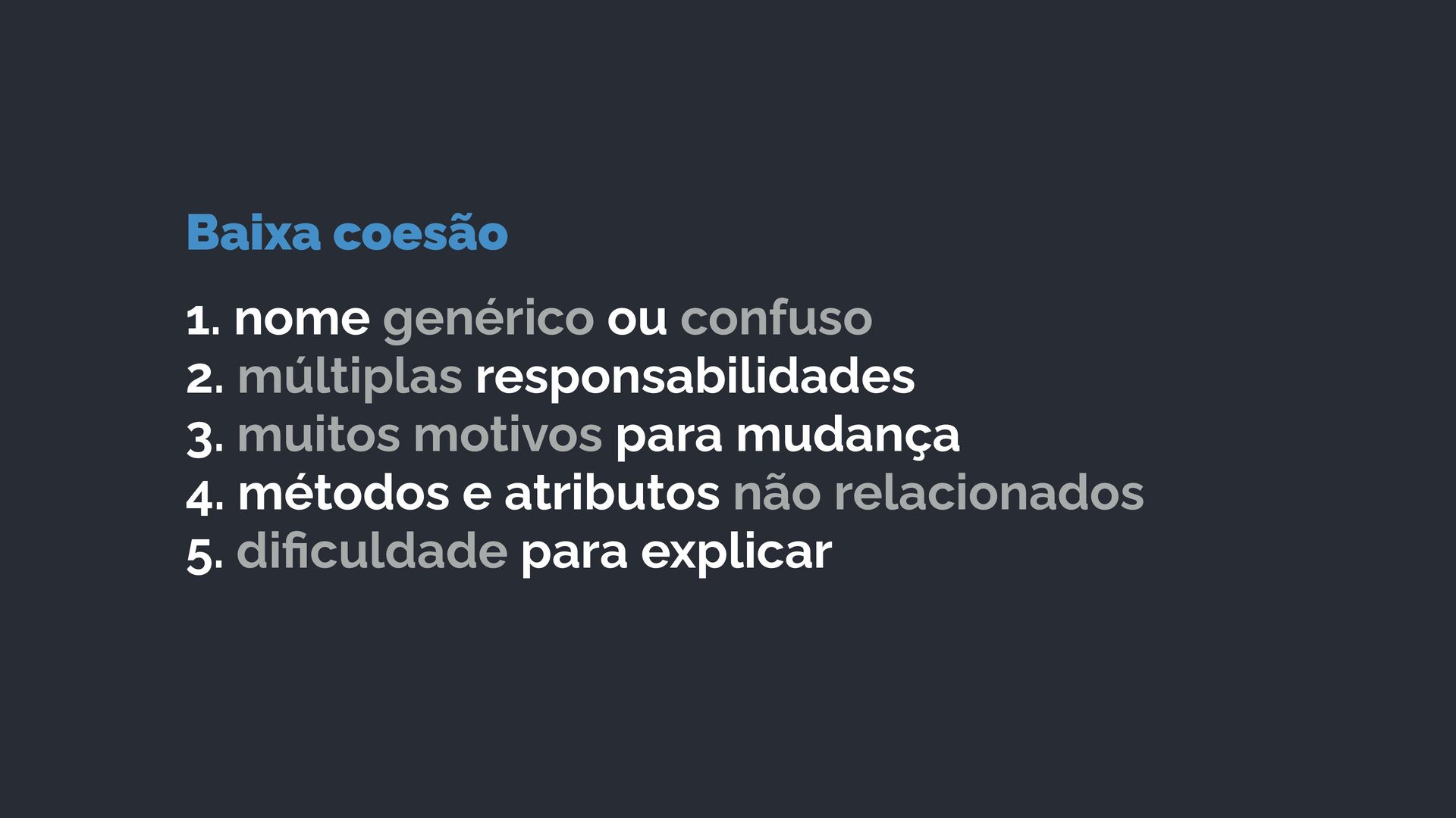 3. muitos motivos para mudança 4. métodos e atributos não relacionados 5. di fi culdade para explicar