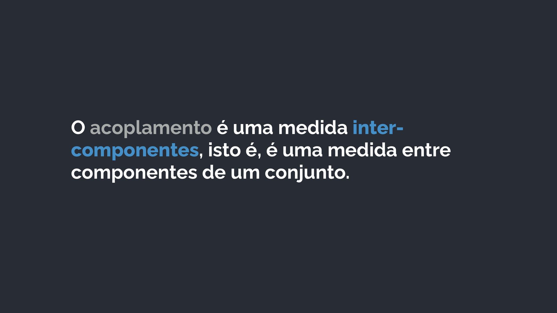 19. O acoplamento é uma medida inter- componentes, isto é, é