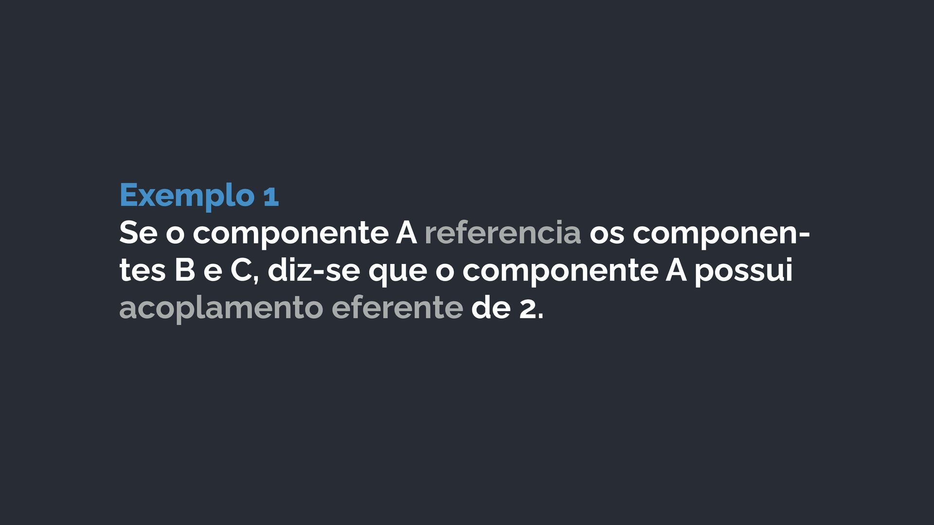 B e C, diz-se que o componente A possui acoplamento eferente de 2.