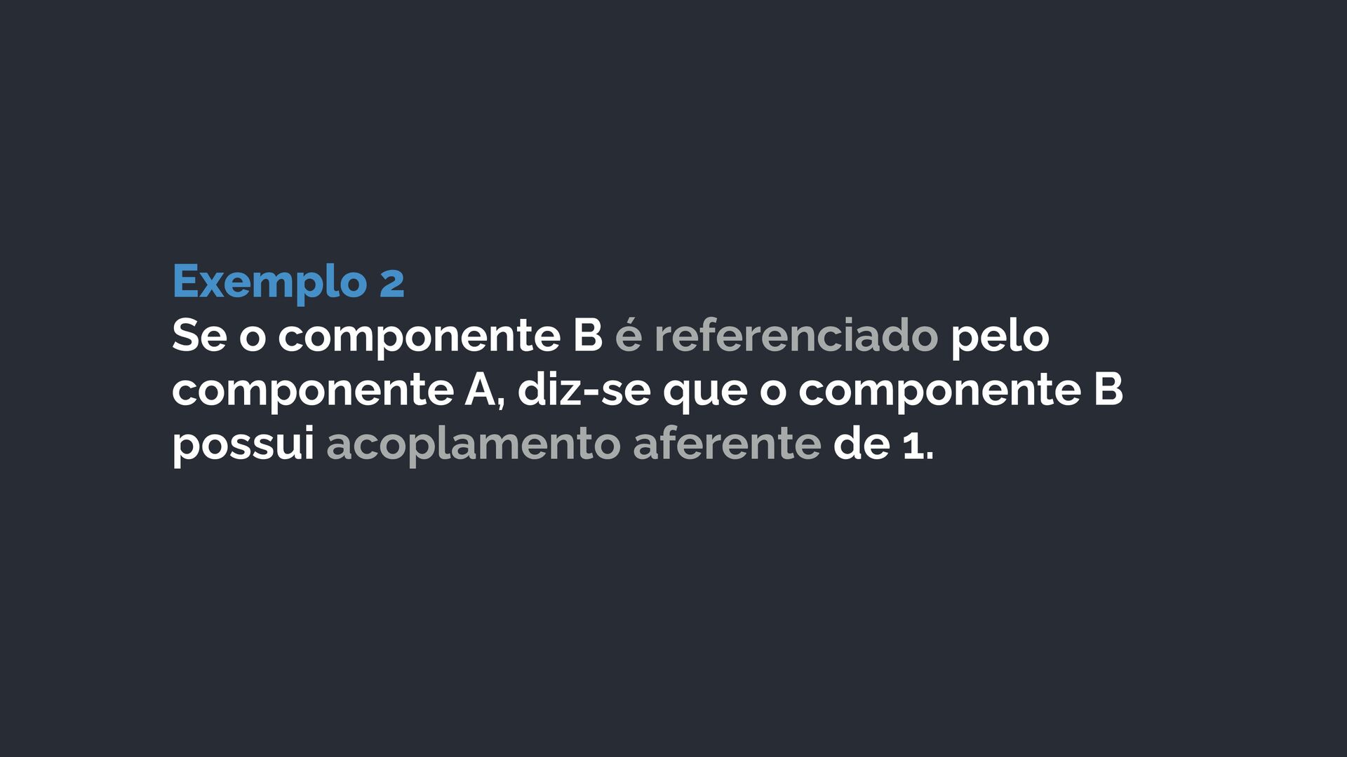 A, diz-se que o componente B possui acoplamento aferente de 1.