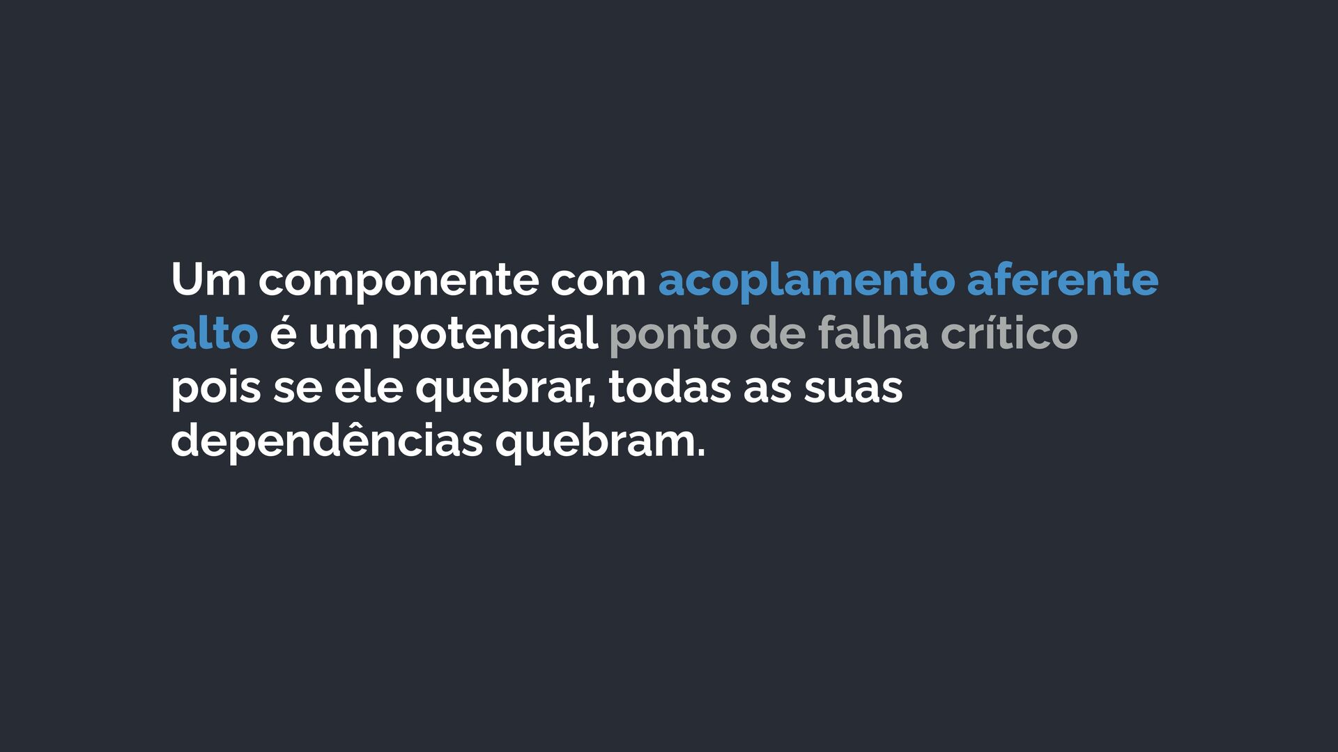 26. Um componente com acoplamento aferente alto é um potencial ponto
