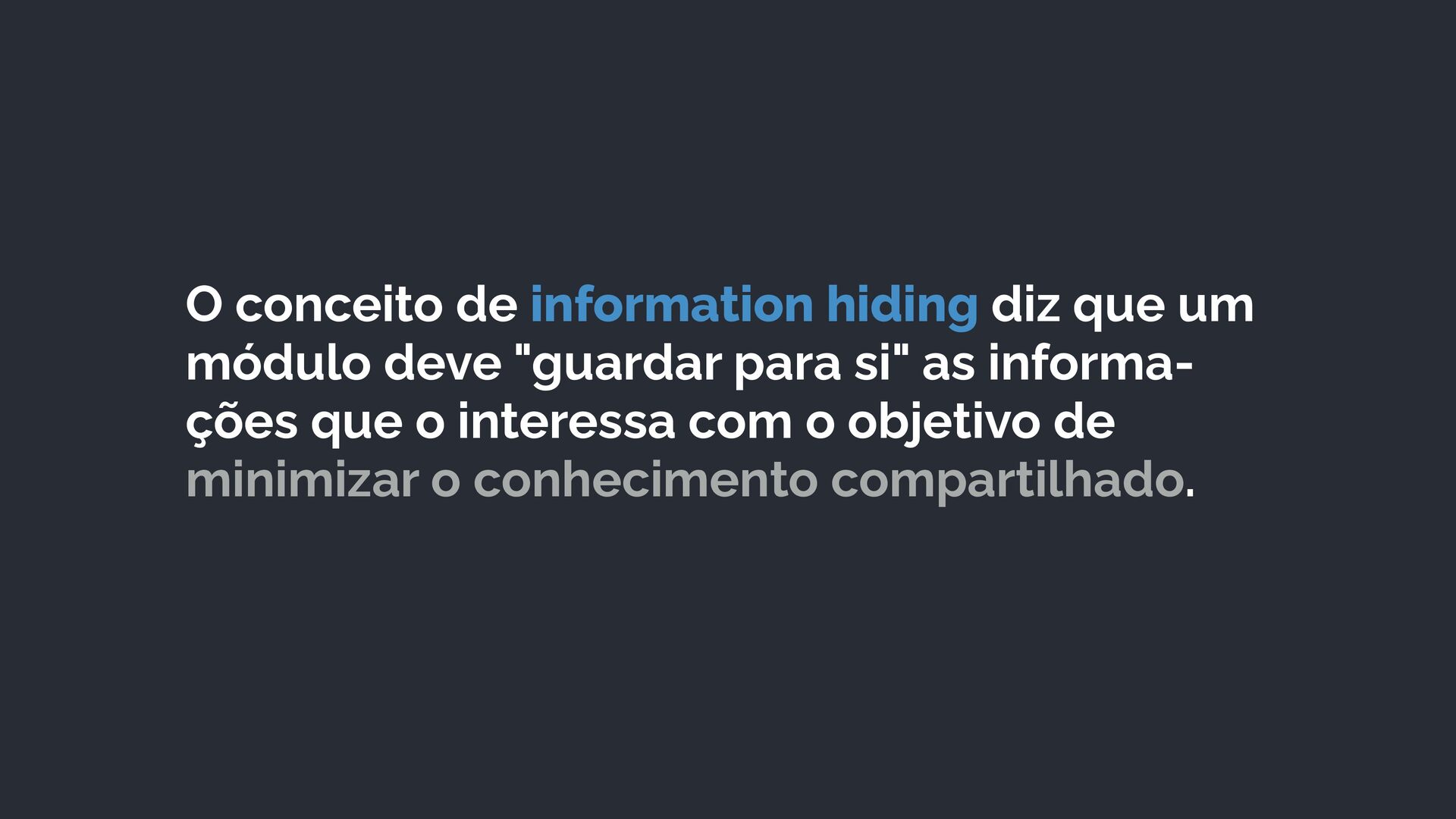 29. O conceito de information hiding diz que um módulo deve