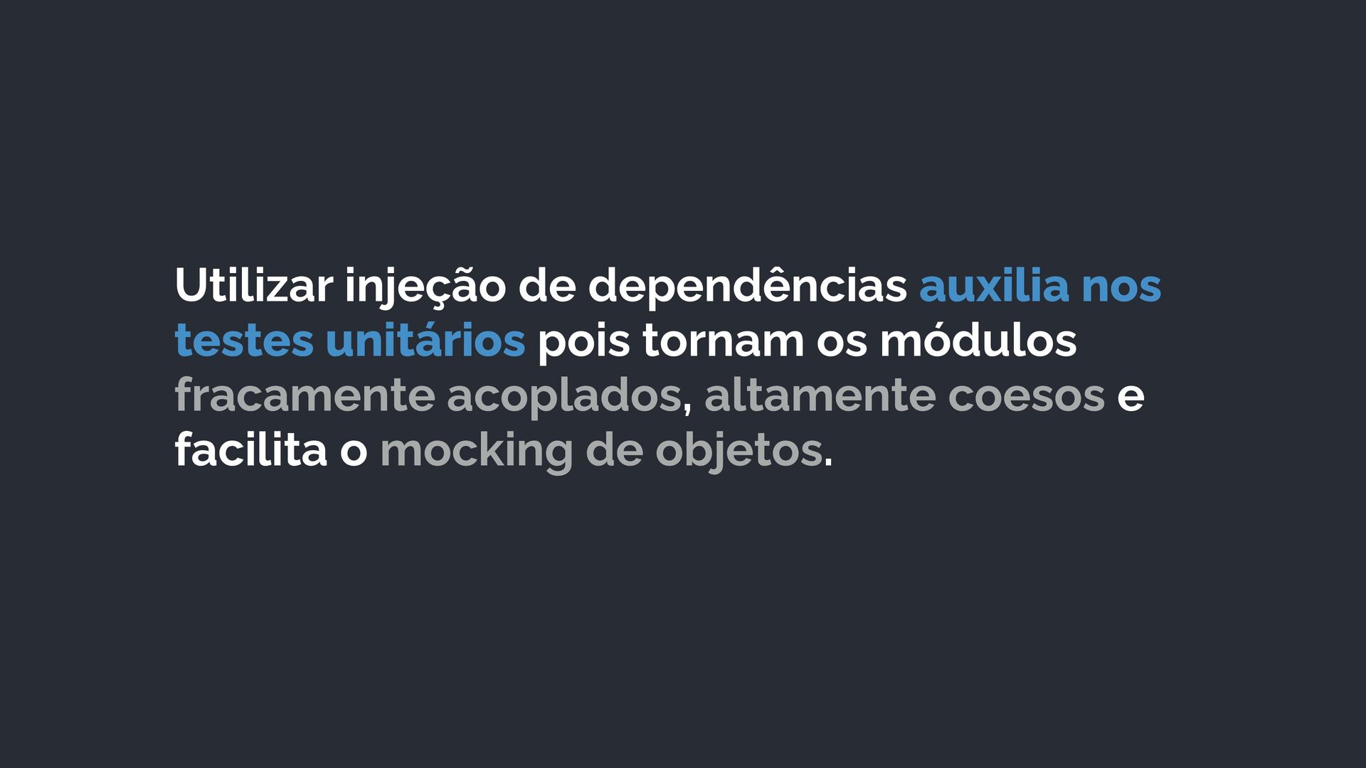 os módulos fracamente acoplados, altamente coesos e facilita o mocking de objetos.