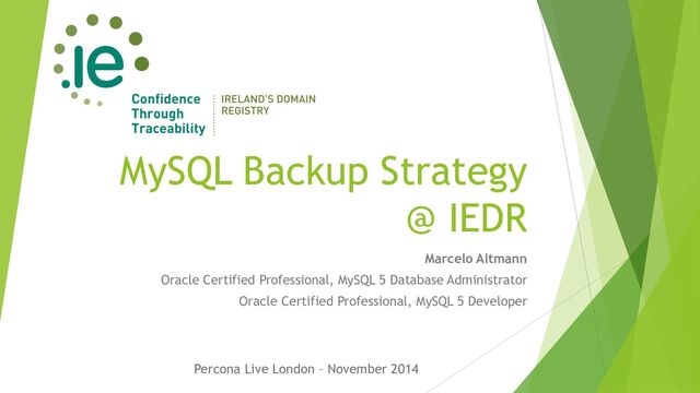Domain Registry (IEDR) Student Systems for Internet @ FEEVALE University Oracle Certified Professional MySQL 5 Database Administrator MySQL 5 Developer marceloaltmann.com @altmannmarcelo