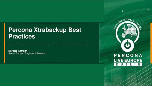 This presentation shows the best practices when using Percona Xtrabackup to take backups. It shows how to compress, encrypt, stream and speed up backups.