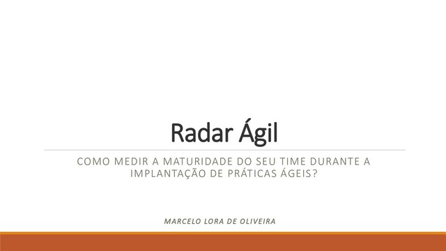 medir a maturidade do seu time em relação às práticas ágeis que estão sendo adotadas O Radar Ágil É uma maneira de visualizar o progresso do time Que permite organizar as áreas de maturidade e medi-las periodicamente Diferente de técnicas complicadas, extensas e pagas A técnica é simples, totalmente adaptável e pode ser aplicada em qualquer time.