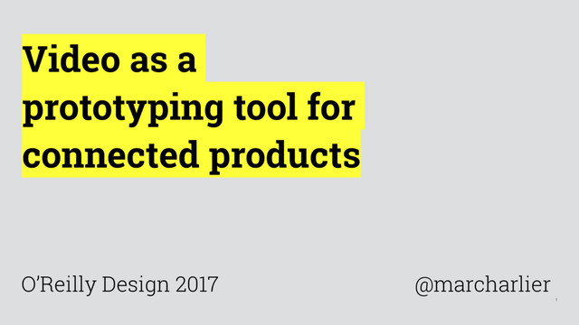 This is a talk about how video is a powerful tool for rapid low-fi prototyping of connected products & the Internet of Things. This talk argues how this method is useful, shows how it builds on existing prototyping methods and gives a practical example for how you can apply this method. Finally, the talk shows how the same ideas and principles of animated or filmed artefacts can be used at different levels of fidelity and focussed on different purposes.