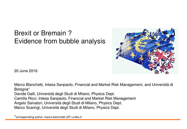 We applied the Johansen-Ledoit-Sornette (JLS) model to detect possible bubbles and crashes related to the Brexit/Bremain referendum scheduled for 23rd June 2016. Our implementation includes an enhanced model calibration using Genetic Algorithms. We selected a few historical financial series sensitive to the Brexit/Bremain scenario, representative of mutiple asset classes.