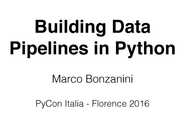 Building Data Pipelines in Python Marco Bonzanini ! PyCon Italia