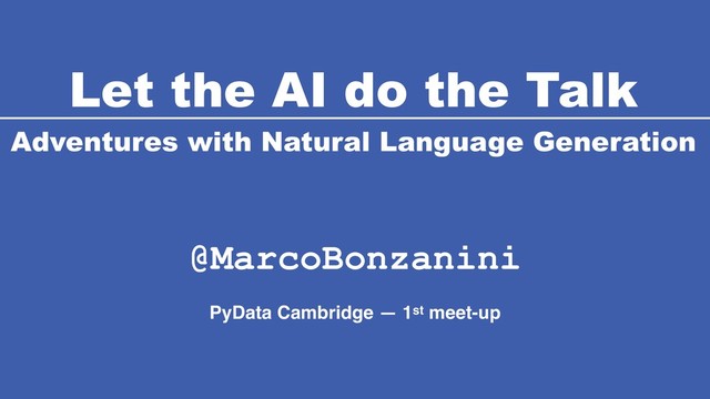 Presentation on Natural Language Generation given at the 1st PyData Cambridge meet-up: