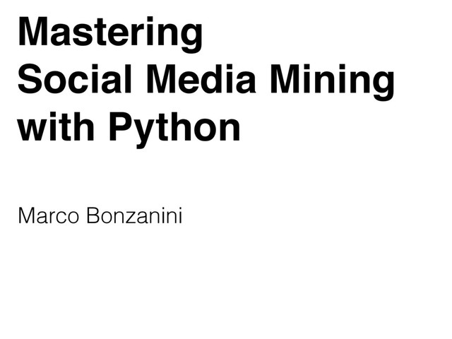 This presentation will introduce the new book "Mastering Social Media Mining with Python" to the PyData audience. The book covers the interaction with Social Media platforms and several applications of Data Mining techniques to social data, in Python.