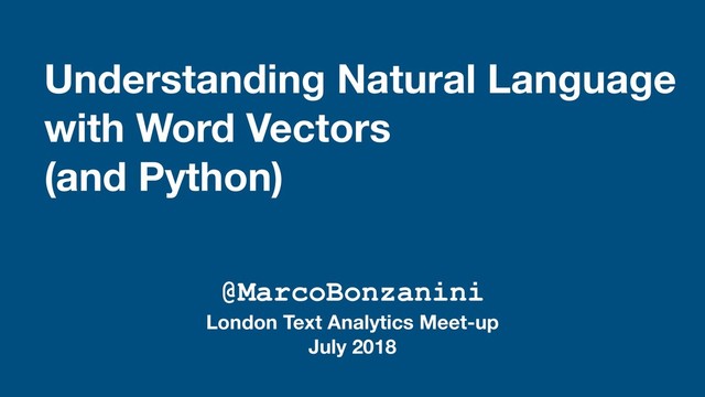 This talk is an introduction to word vectors, a.k.a. word embeddings,