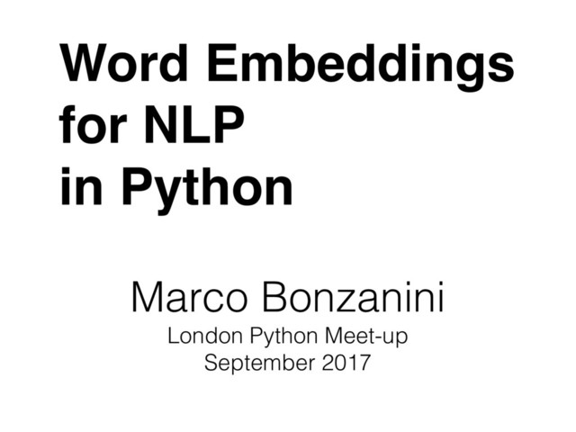 This talk is an introduction to word embeddings, in particular with details on word2vec and doc2vec