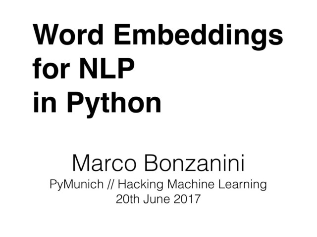 E. Moody (@chrisemoody) see videos on lda2vec Readings • Deep Learning for NLP (R. Socher) http://cs224d.stanford.edu/ • “word2vec parameter learning explained” by Xin Rong More readings • “GloVe: global vectors for word representation” by Pennington et al. • “Dependency based word embeddings” and “Neural word embeddings as implicit matrix factorization” by O. Levy and Y. Goldberg