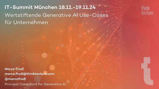 Generative AI kann mehr, als Texte zu schreiben: Wir schauen live auf drei interessante Use-Cases aus echten Projekten, die Unternehmen Zeit sparen und schnell Mehrwert liefern. Der GenAI-Consultant Marco Frodl gibt dazu Einblick in Ergebnisse und Erfahrungen aktueller AI-Beratungsprojekte: