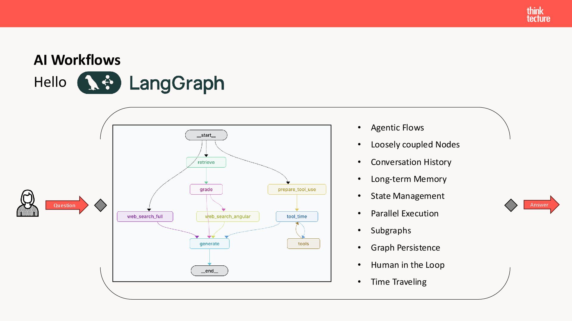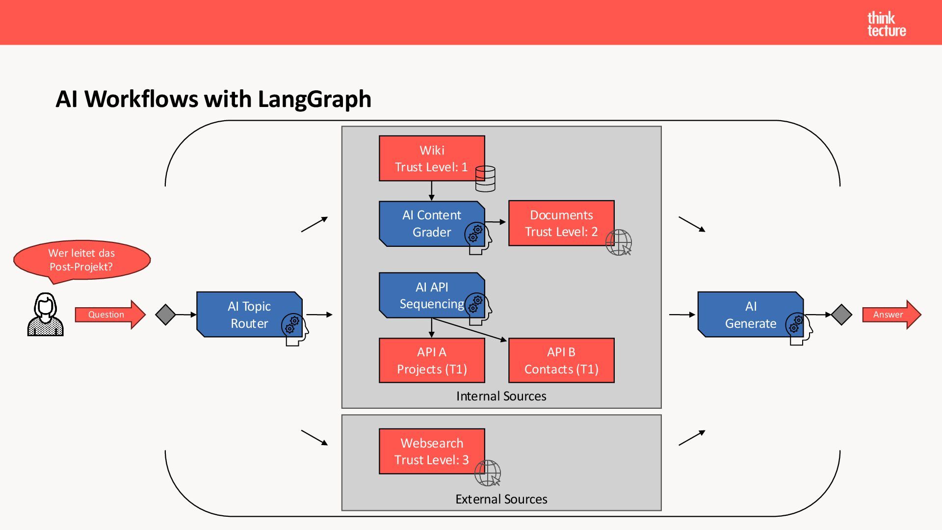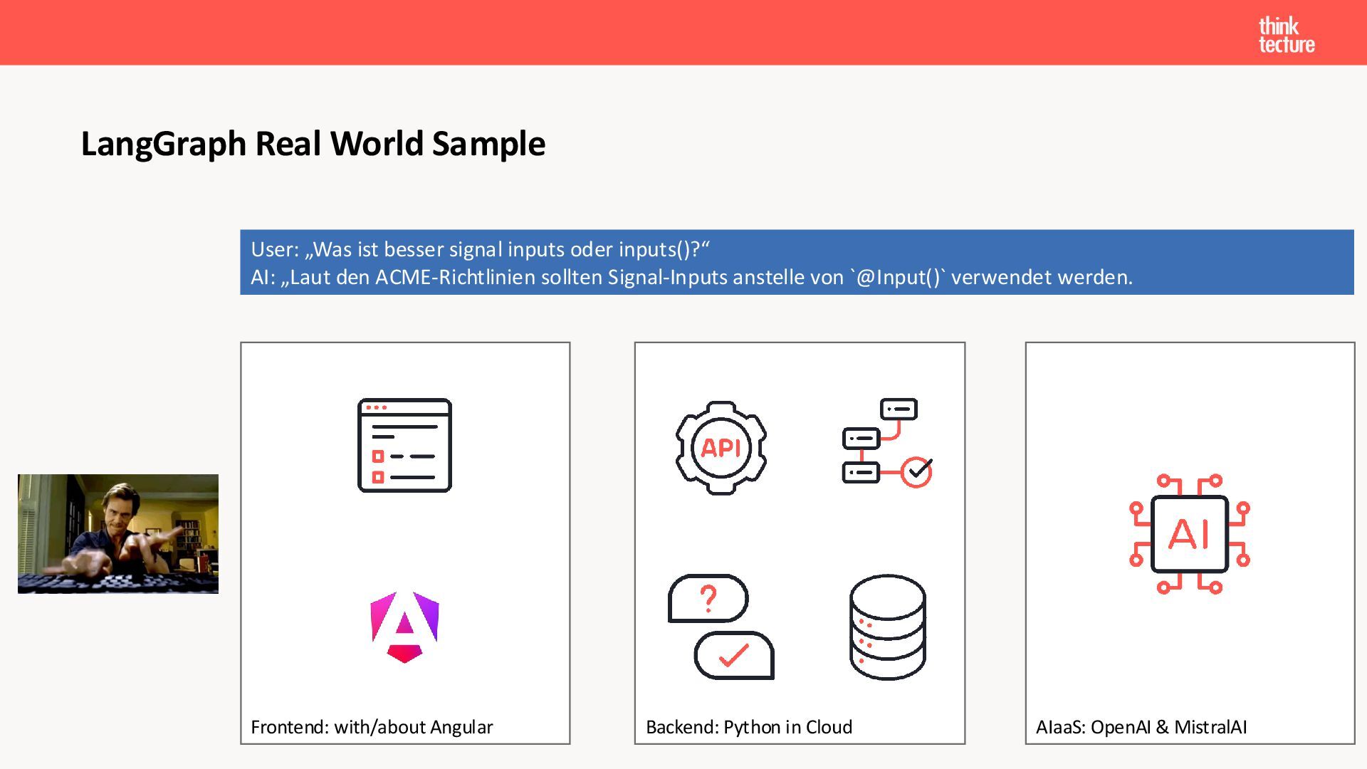 Wir vermitteln zunächst das notwendige Generative AI-Wissen für die Schwerpunkte von AI-Backendentwicklern, um mitreden zu können: Prompts, Chats, Reasoning, RAG, Agenten und AI-Workflows. Einfache PoC-Implementierungen erfolgen dabei mit Python und den Frameworks LangChain/LangGraph, um State-of-the-Art AI-Funktionalität als REST-APIs bereitzustellen – der perfekte Anknüpfungspunkt für Angular-Entwickler:innen.