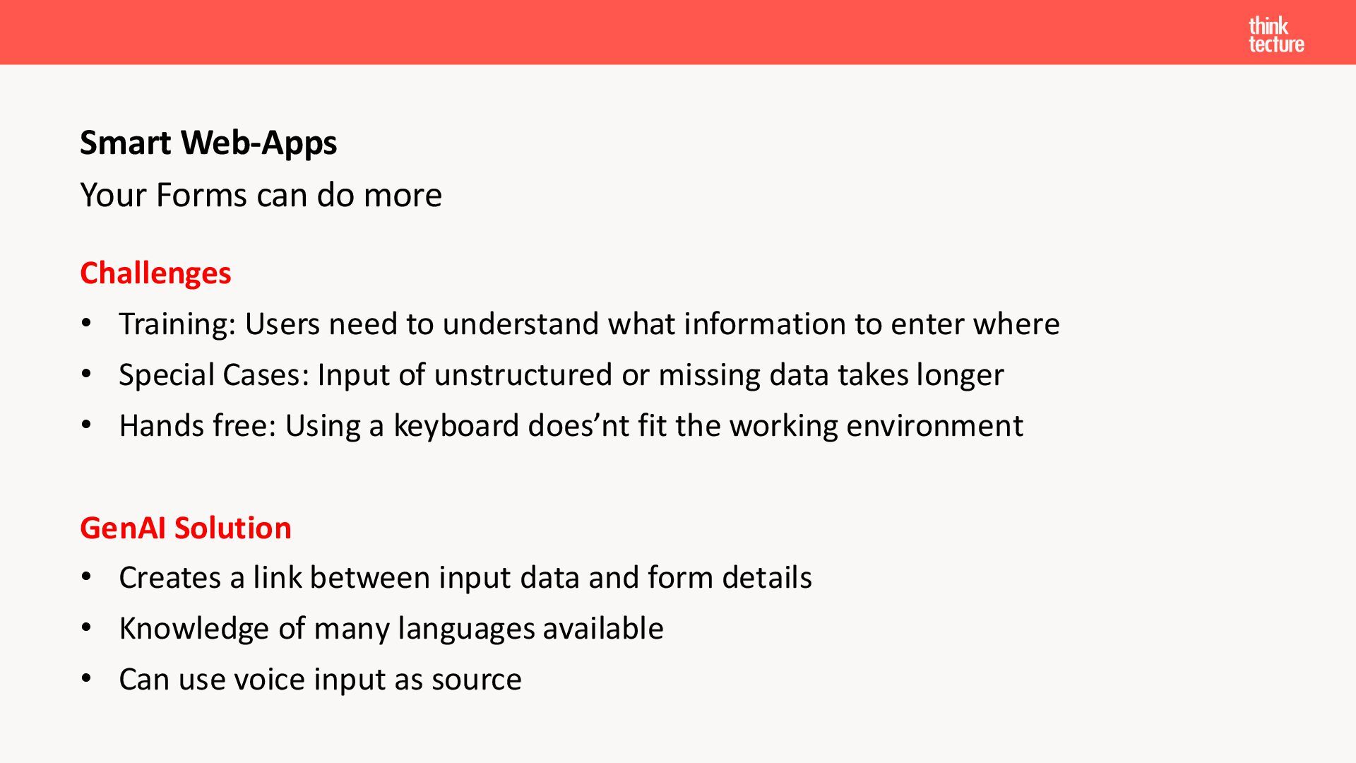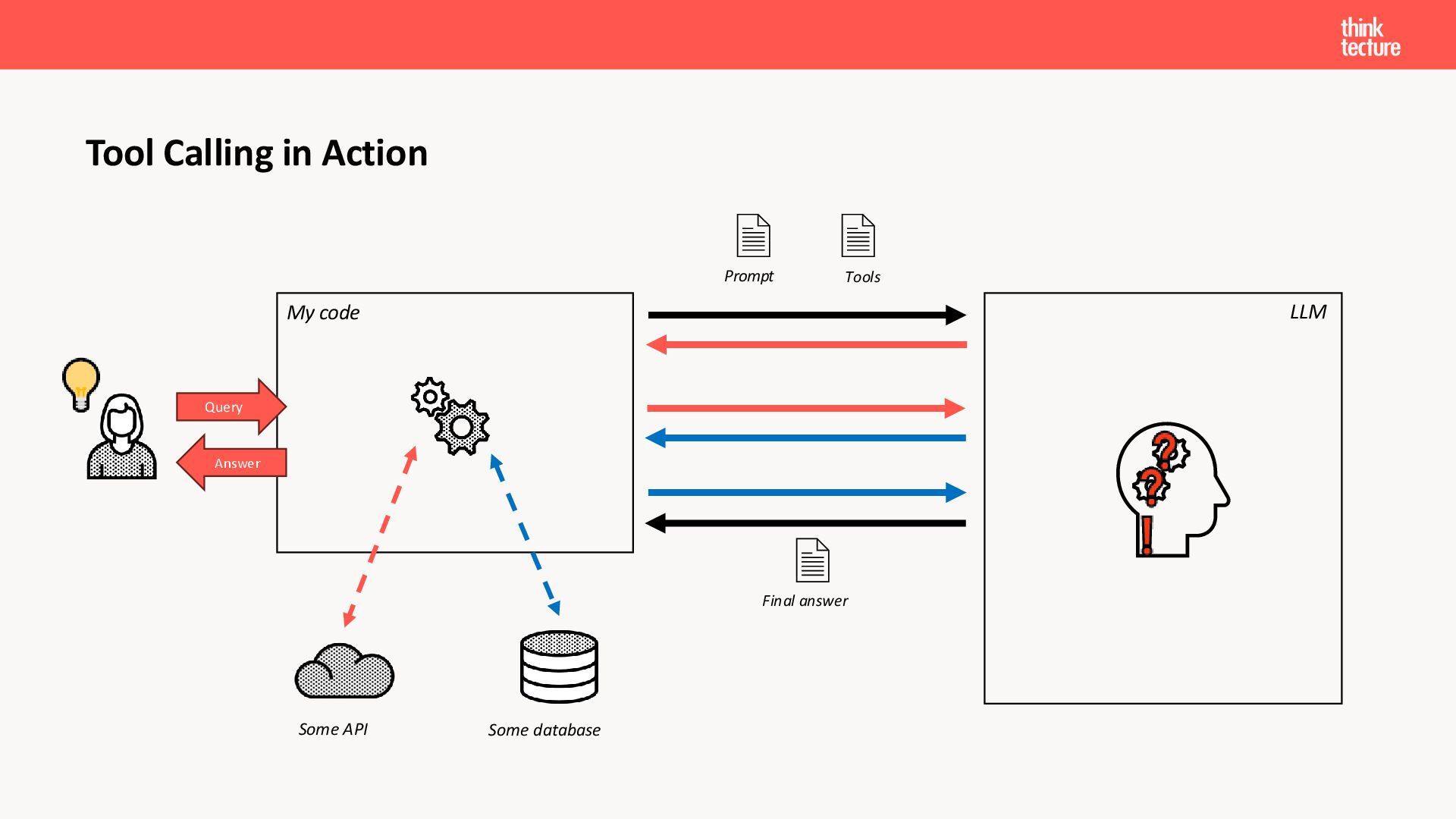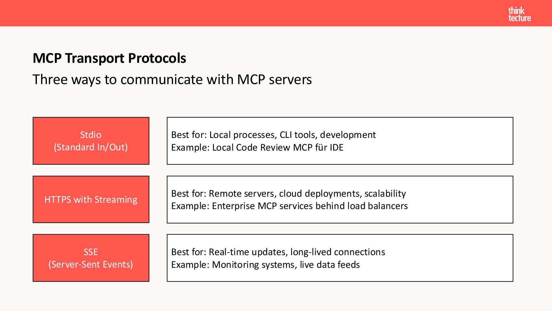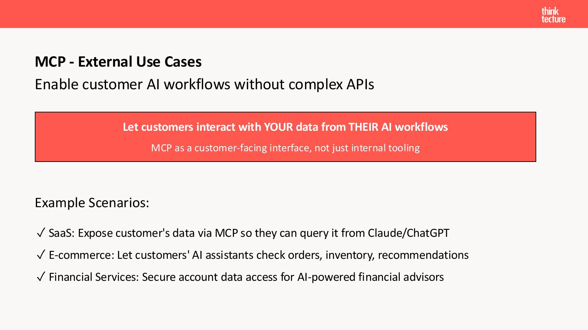 Der Fokus liegt auf modernen Frontend-Herausforderungen: optimaler API-Konsum, Streaming-Implementation für Echtzeit-Antworten, Darstellung von Reasoning-Prozessen bei Thinking-Modellen und die Erweiterung von Anwendungen um TypeScript-basierte MCP Server, die dem AI-Backend Zugriff auf Unternehmensdaten ermöglichen.