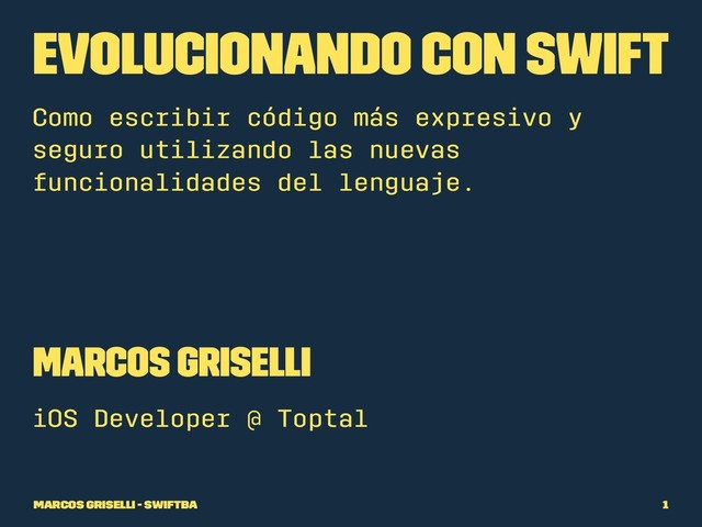 En la primera charla, @marcosgriselli nos va a contar acerca de algunas features nuevas de Swift 4.1 y 4.2. Analizaremos cómo estos cambios nos llevarán a escribir código más seguro y expresivo, y cómo podemos aplicarlo en el día a día de nuestras apps. También, repasaremos alguna proposal de Swift Evolution ya aceptada y veremos cómo esto impactará a futuro en nuestro código.