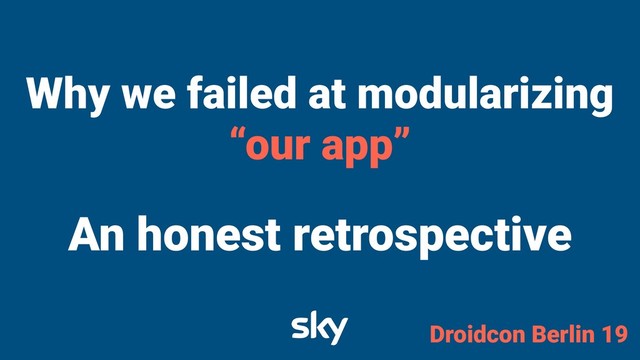 Modularization is the new trend, almost everybody in the Android ecosystem is refactoring their apps to use a modularized approach. We at Sky are no different, we had a big monolithic codebase supporting 4 apps in different countries that we started modularizing in September 2017. But we failed, big time.