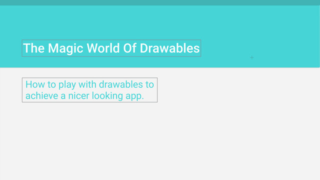 A very useful and powerful feature of android that developers sometimes ignore or use it wrong. The small details of your app is what make it amazing, in this presentation we will talk about how Shapes, Layer-Lists and more can make your UI jump to another level and amaze your users. All that without being a rockstar designer!