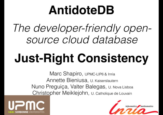We propose a new approach that is based on application requirements, “Just-Right Consistency” (JRC), ensuring just enough synchronisation to ensure that the application remains correct.