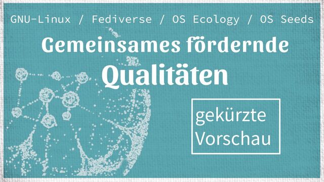 GPL-Lizenz Das Projekt Open- Source-Ecology und die Din-Spec 3105 Open-Source- Seeds gegen patentiertes Samengut Das Freie soziale Netzwerk Fediverse und das Activity-Pub Protokoll Die Munus- Stiftung zur Verwaltung des Gemeinsamen