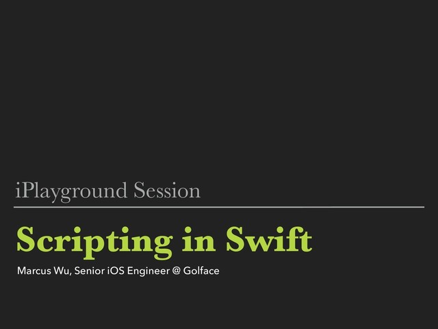 根據 https://twitter.com/marcuswu0814/status/1053648917710008320 討論,此talk 命名為「Scripting in Swift」並不精確,其主要內容講述如何透過Swift Package 製作CLI tool。 🙇♂️