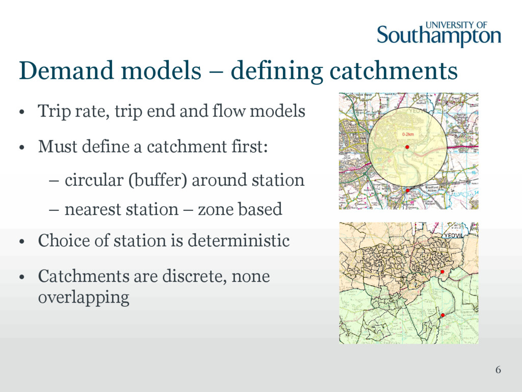 end and flow models • Must define a catchment first: – circular (buffer) around station – nearest station – zone based • Choice of station is deterministic • Catchments are discrete, none overlapping