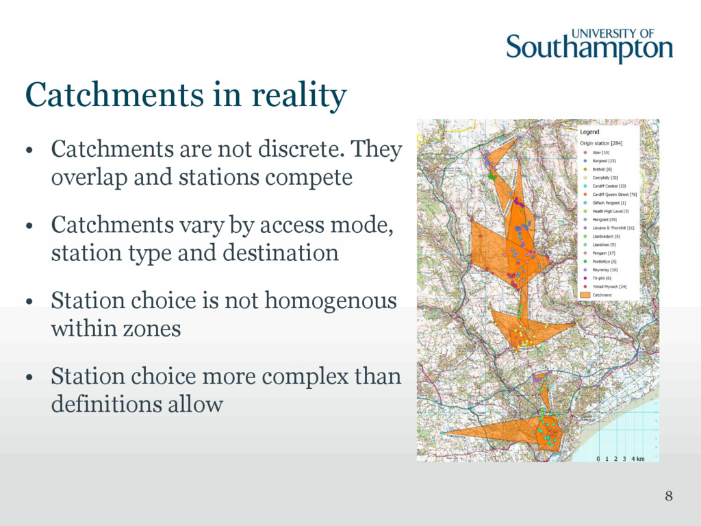 overlap and stations compete • Catchments vary by access mode, station type and destination • Station choice is not homogenous within zones • Station choice more complex than definitions allow