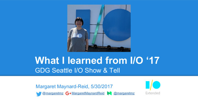 At Google Developer Group (GDG) Seattle I/O Show & Tell, I shared what I have learned from Google I/O 2017: AI/machine learning, TensorFlow and Android.