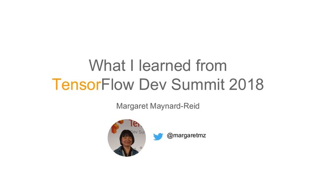 #WomenTechMakers References • TensorFlow Dev Summit 2018 Schedule • TensorFlow 1.70 release notes • Video recording to all talks at the TensorFlow Dev Summit • Official TensorFlow blog on Medium • Official TensorFlow YouTube Channel • My blog post here: bit.ly/learnings-TFDevSummit