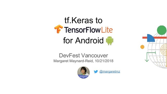 At DevFest Vancouver 2018, I gave a talk on the end to end process of how to train a model with TensorFlow high level API tf.Keras, obtain the TensorFlow Lite model and deploy it to an Android app.