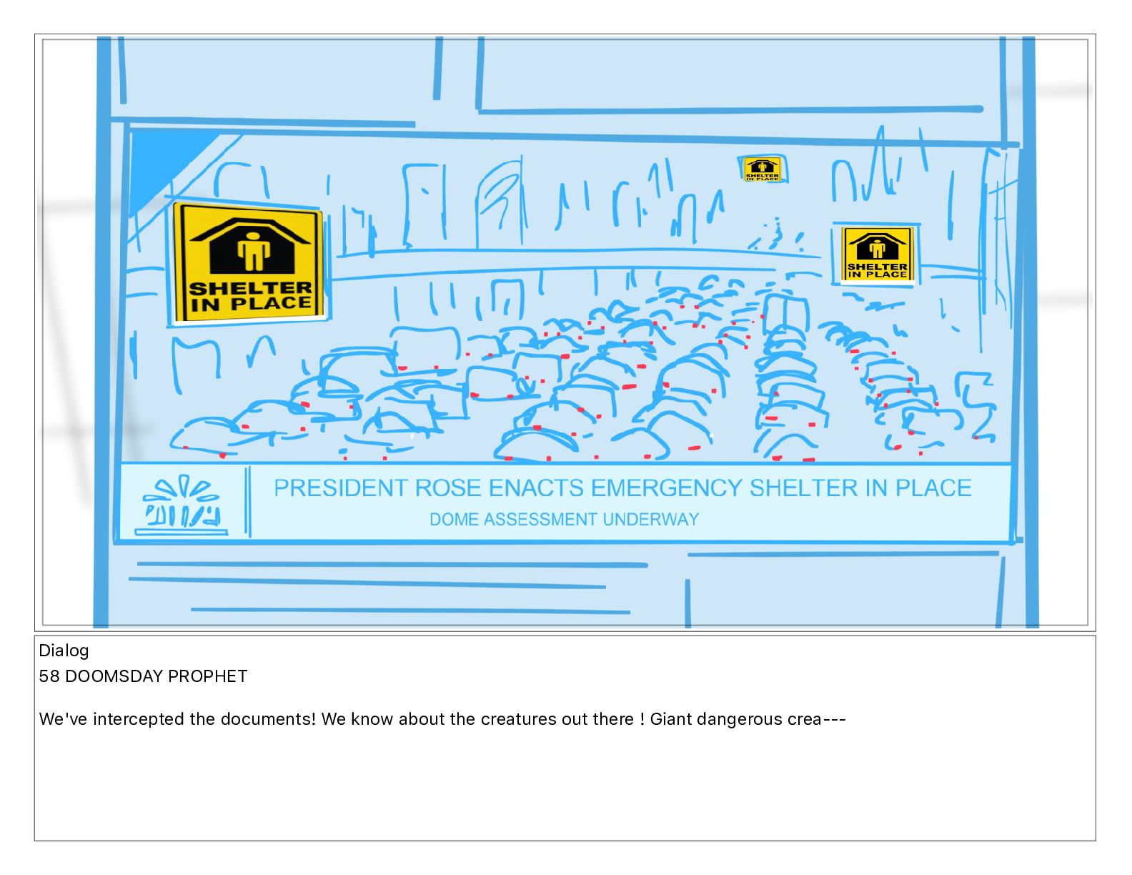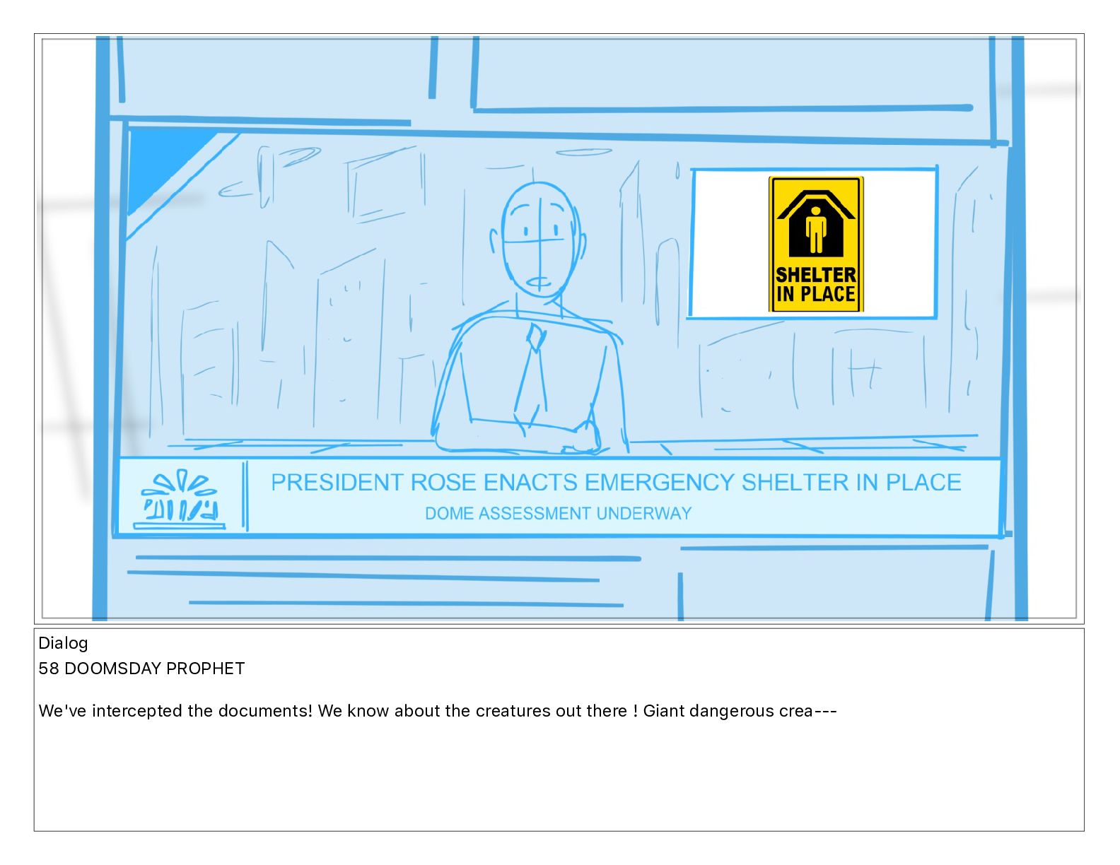 Dialog NEWS ANCHOR and shelter in place while the dorm's