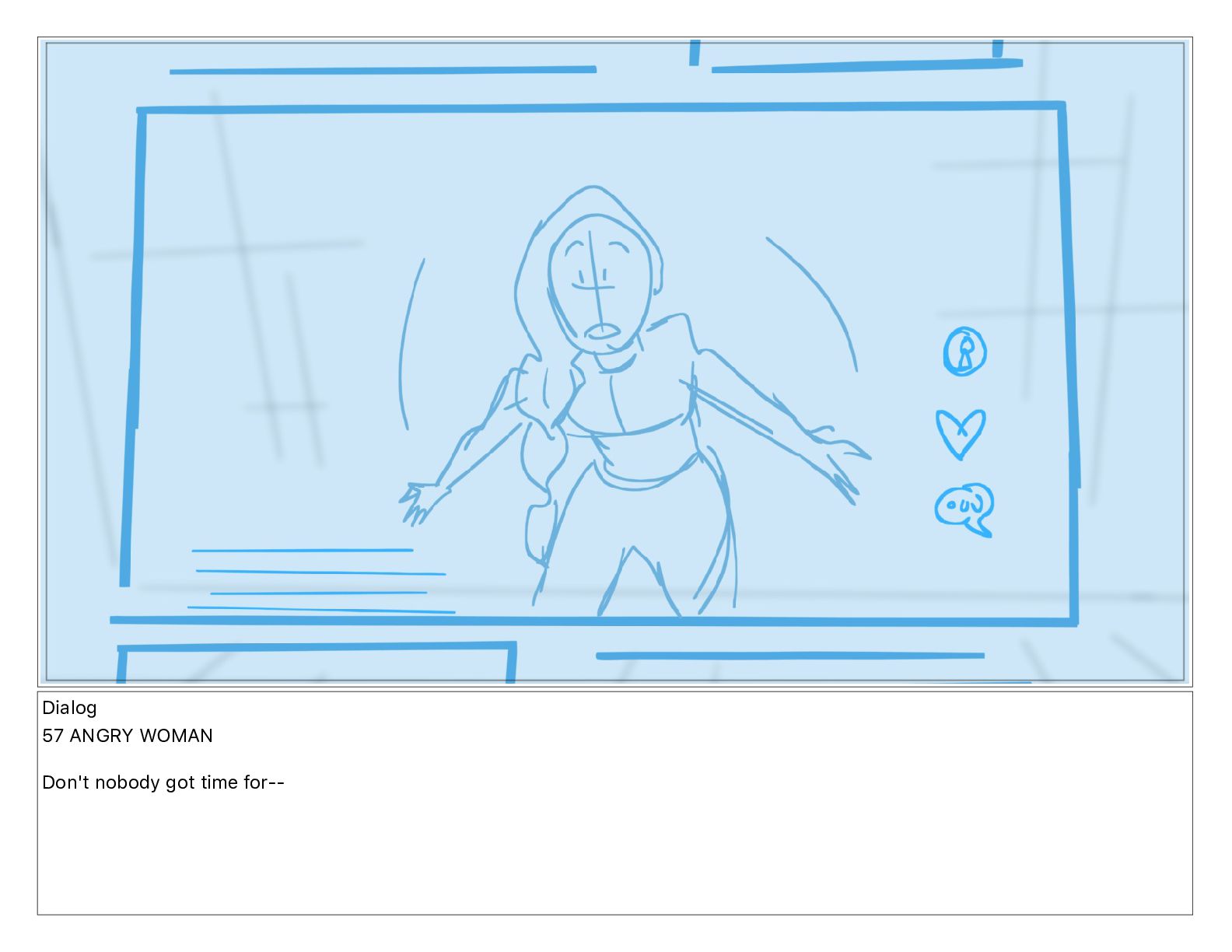 Dialog 57 ANGRY WOMAN Don't nobody got time for--
