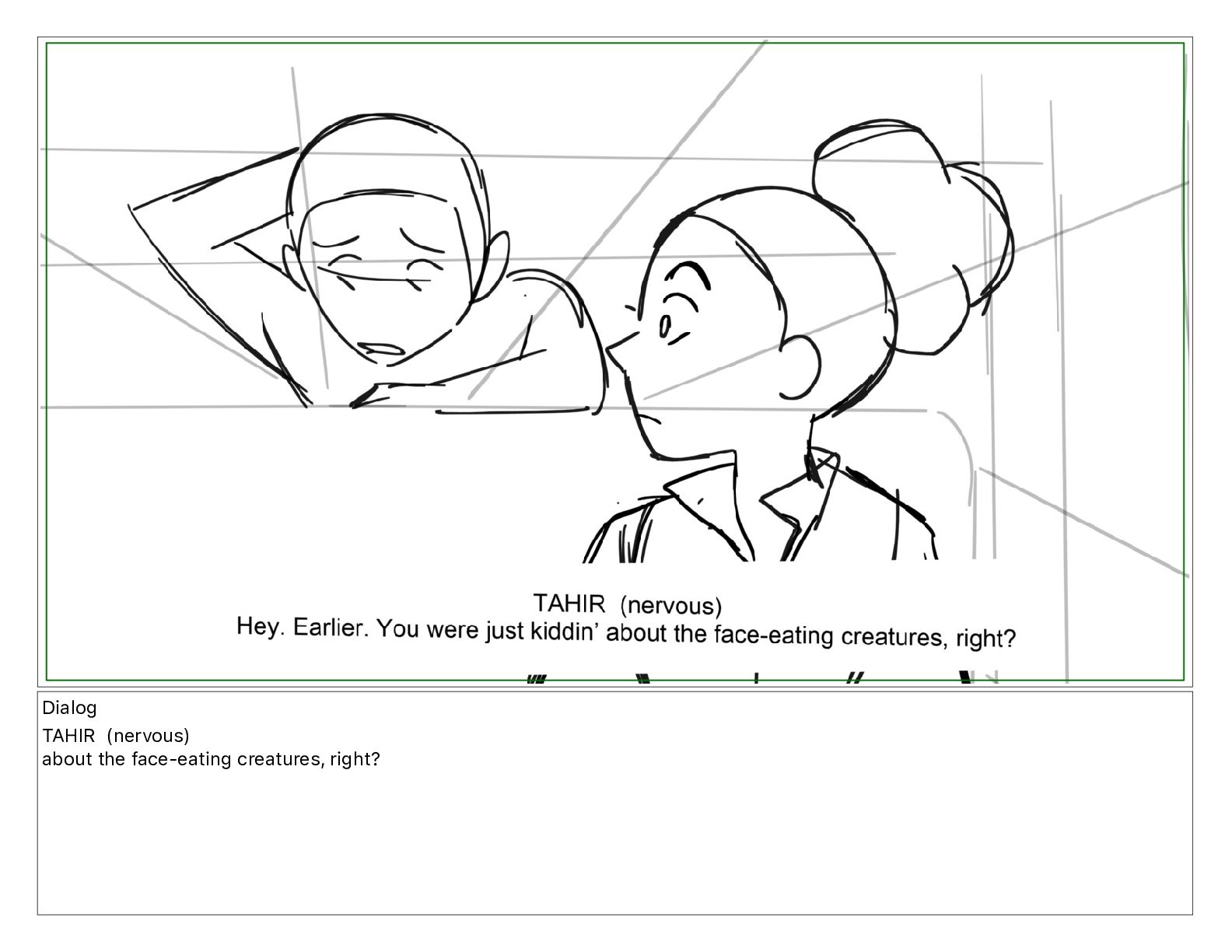 Dialog TAHIR (nervous) about the face-eating creatures, right?