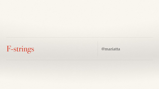 Lightning talk about f-strings. Presented at PyCascades 2018 in Vancouver.