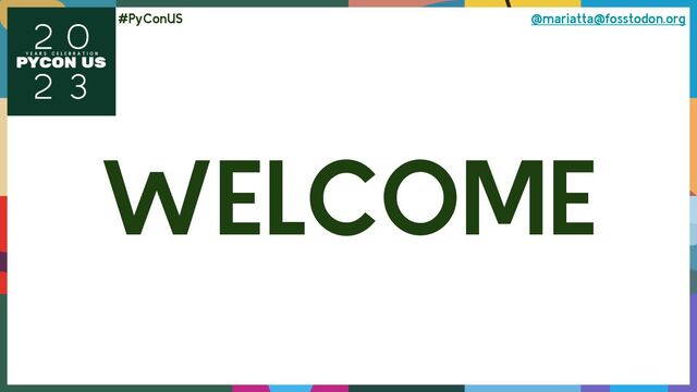 Welcome message to open PyCon US 2023 in Salt Lake City, celebrating 20 years of PyCon US
