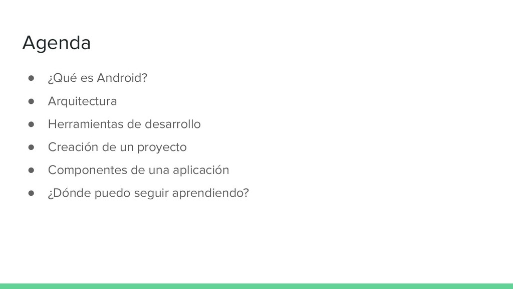 Agenda • ¿Qué es Android? • Arquitectura • Herramientas de