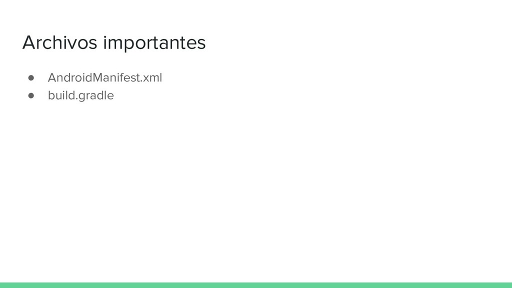 Archivos importantes • AndroidManifest.xml • build.gradle