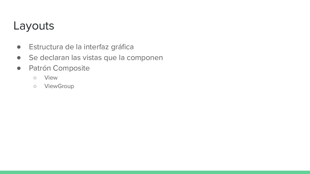 las vistas que la componen • Patrón Composite ◦ View ◦ ViewGroup