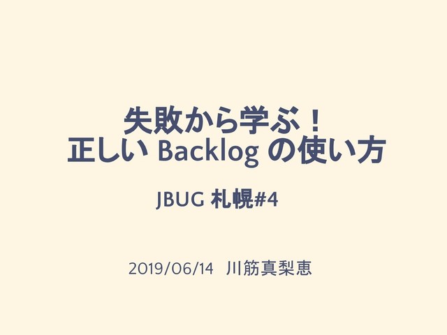 失敗から学ぶ! 正しい Backlog の使い方 2019/06/14 川筋真梨恵 JBUG 札幌#4