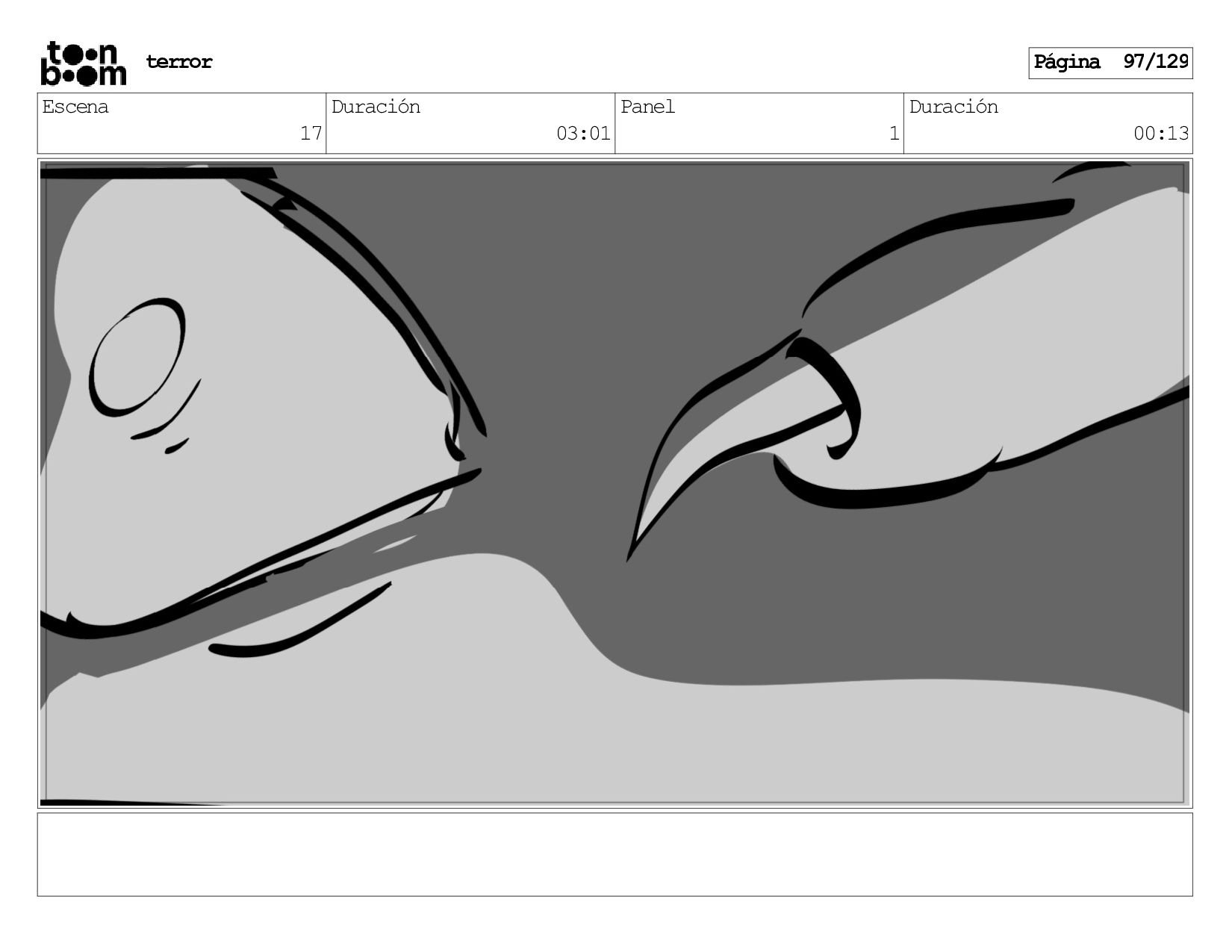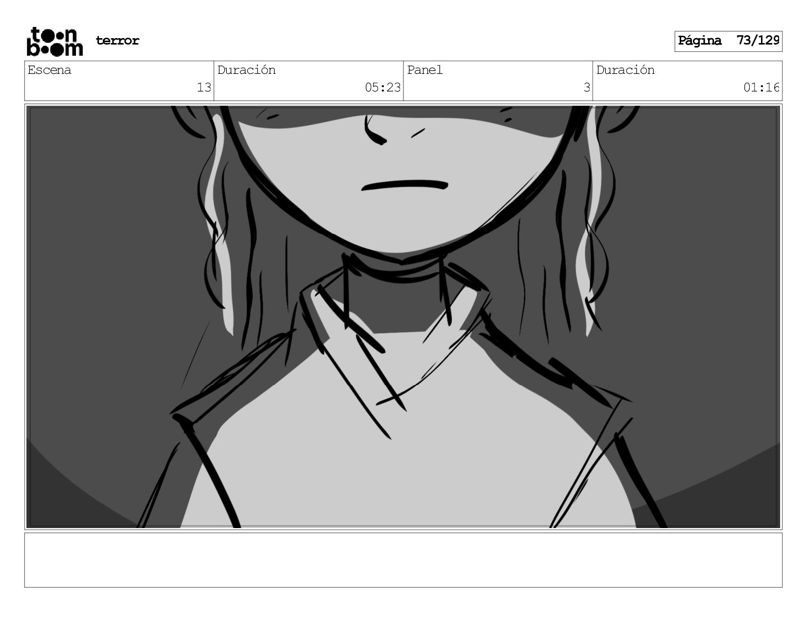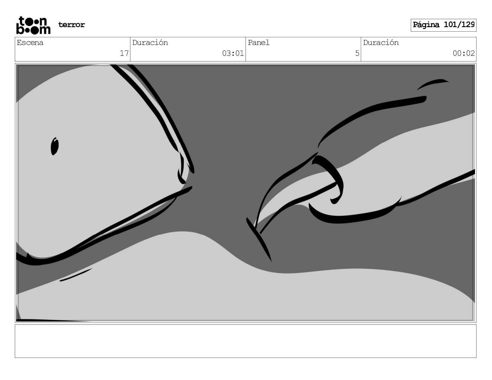 Escena 15 Duración 05:00 Panel 1 Duración 00:01 terror Página