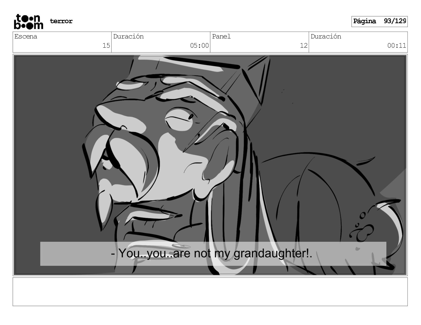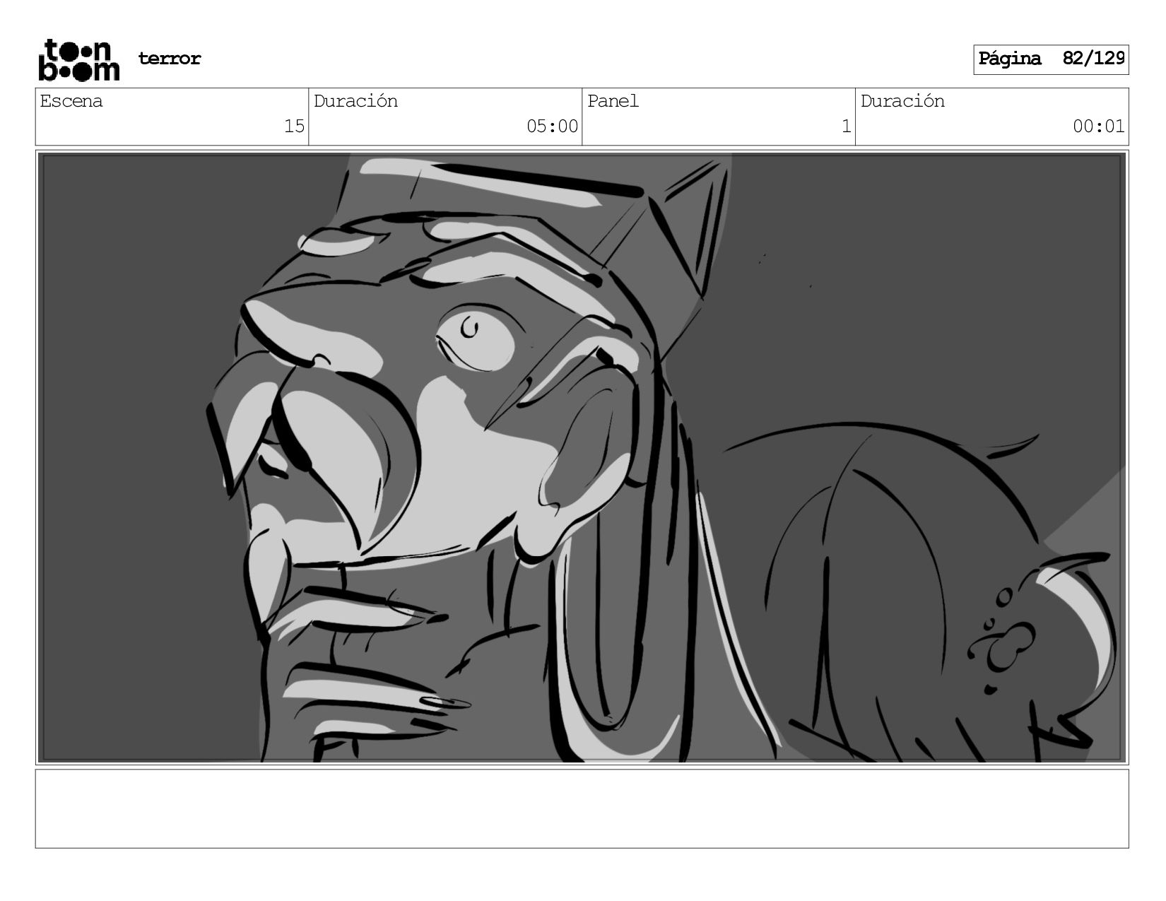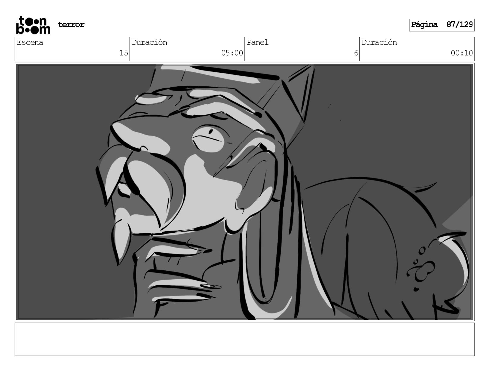 Escena 15 Duración 05:00 Panel 1 Duración 00:01 terror Página