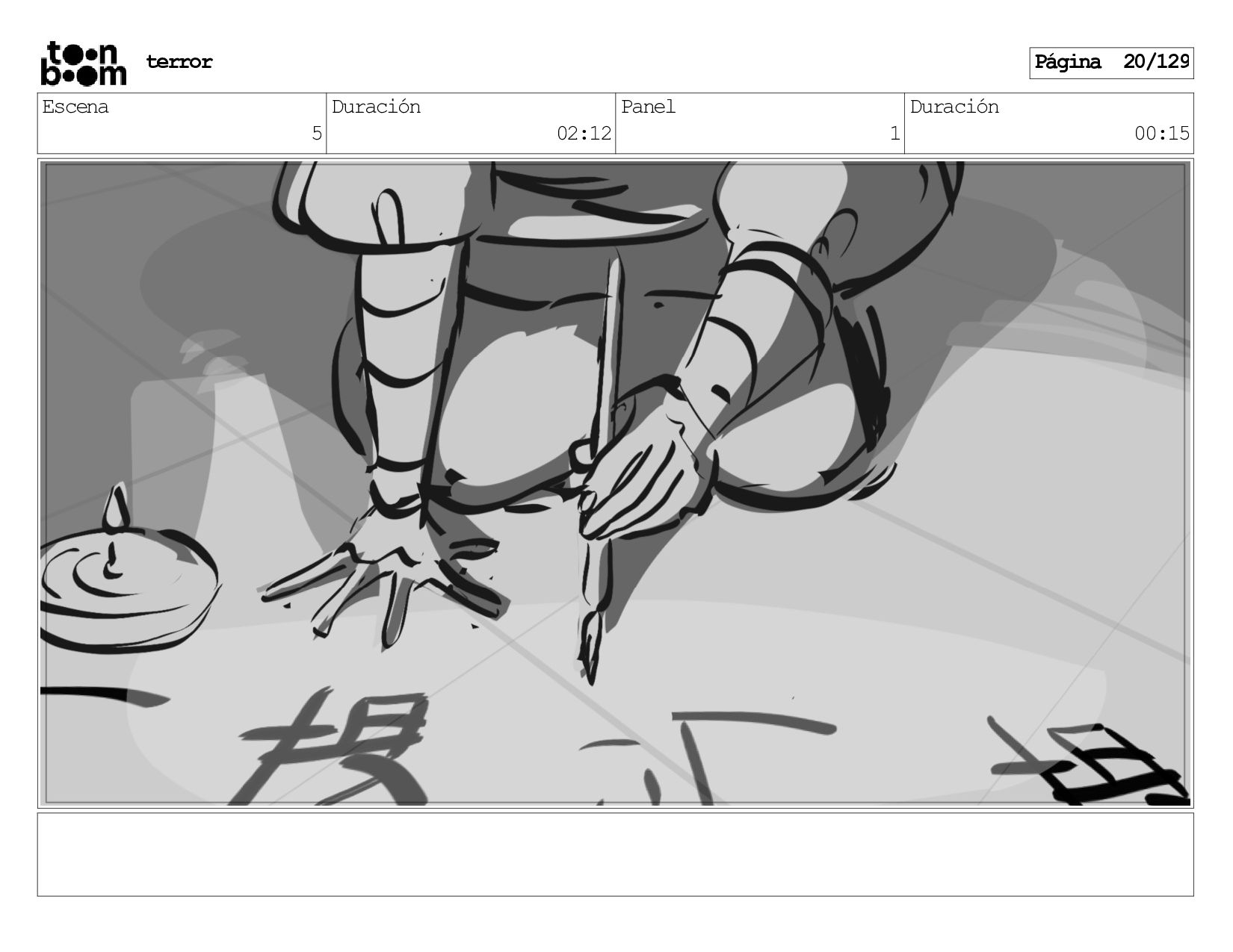 Escena 15 Duración 05:00 Panel 13 Duración 00:18 terror Página