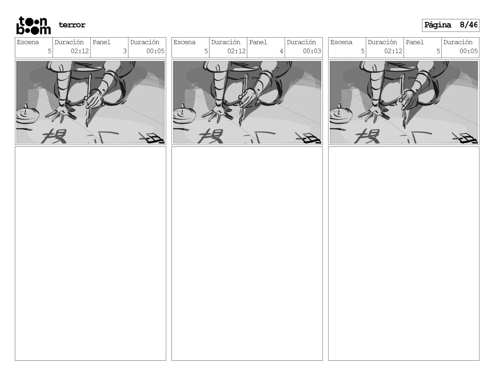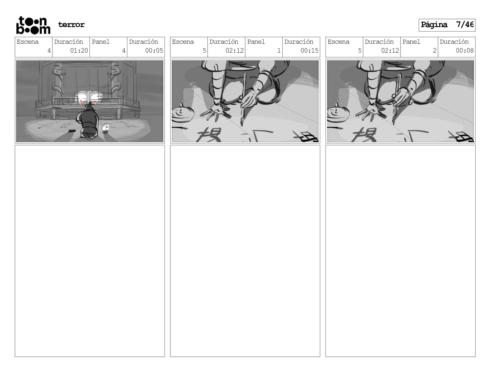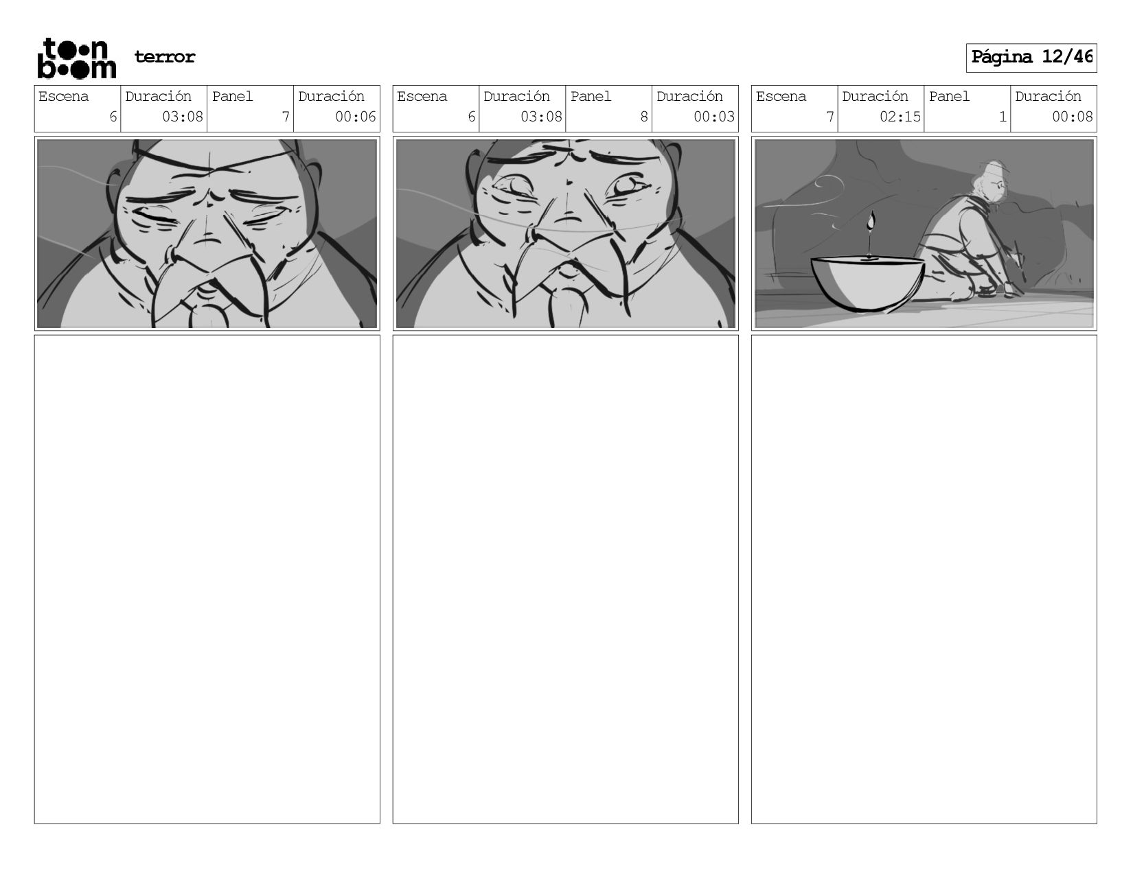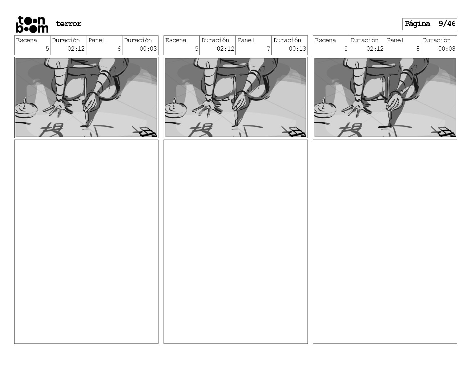 Duración 02:12 Panel 8 Duración 00:03 Escena 3_A Duración 02:12 Panel 9 Duración 00:07 terror Página 4/46