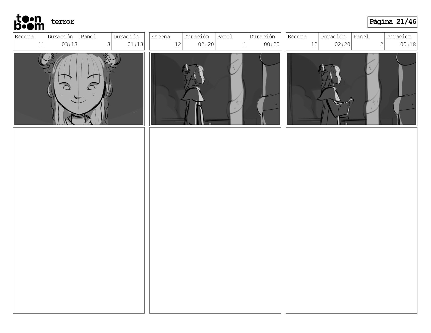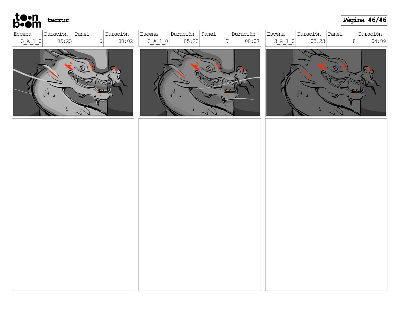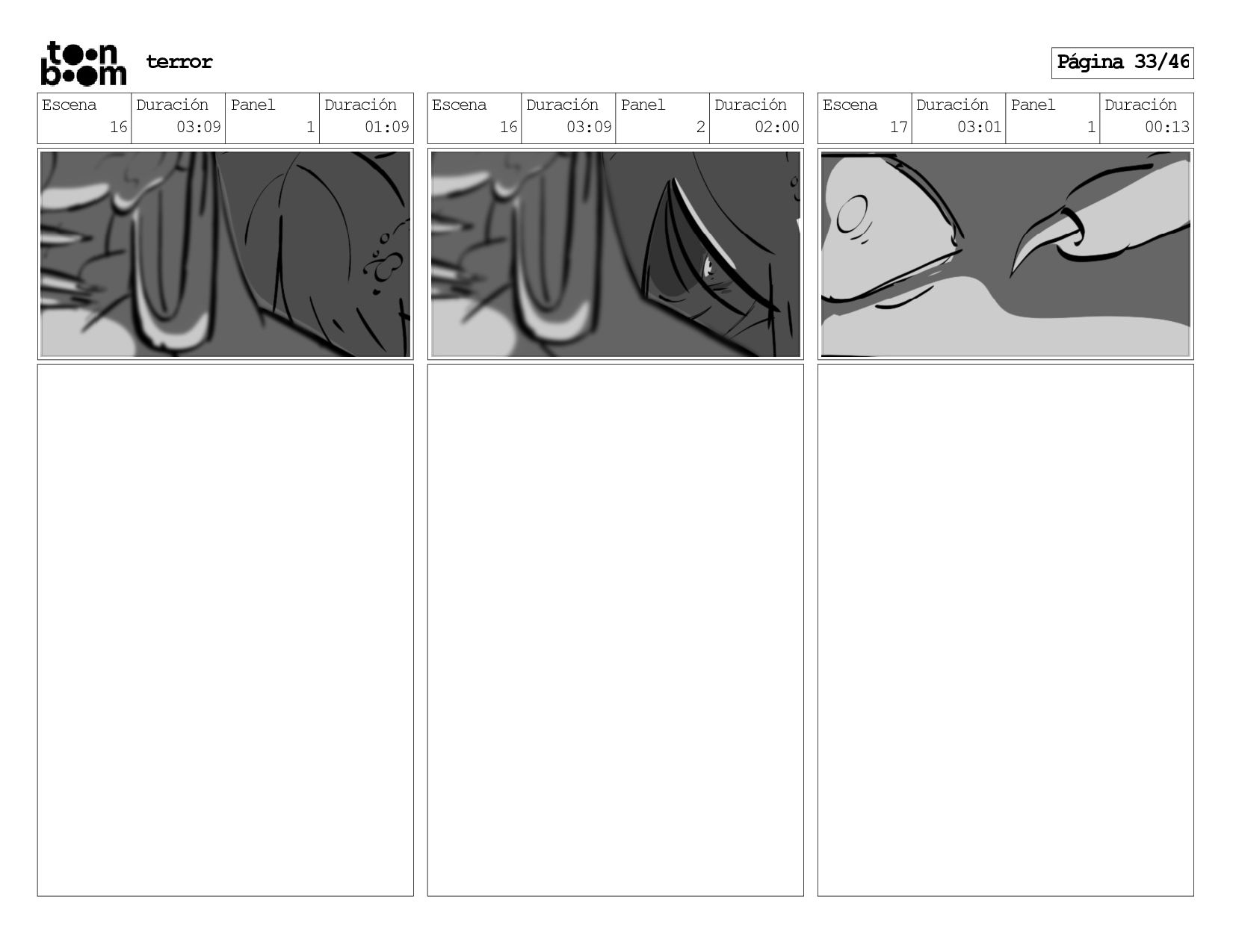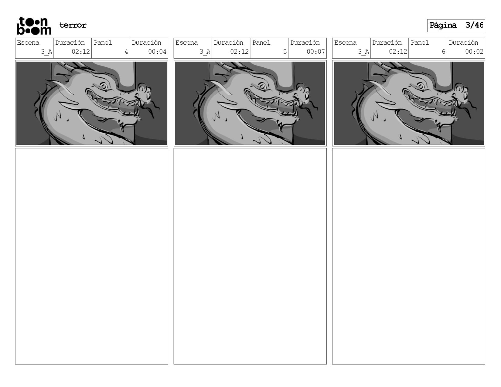 Duración 02:12 Panel 8 Duración 00:03 Escena 3_A Duración 02:12 Panel 9 Duración 00:07 terror Página 4/46